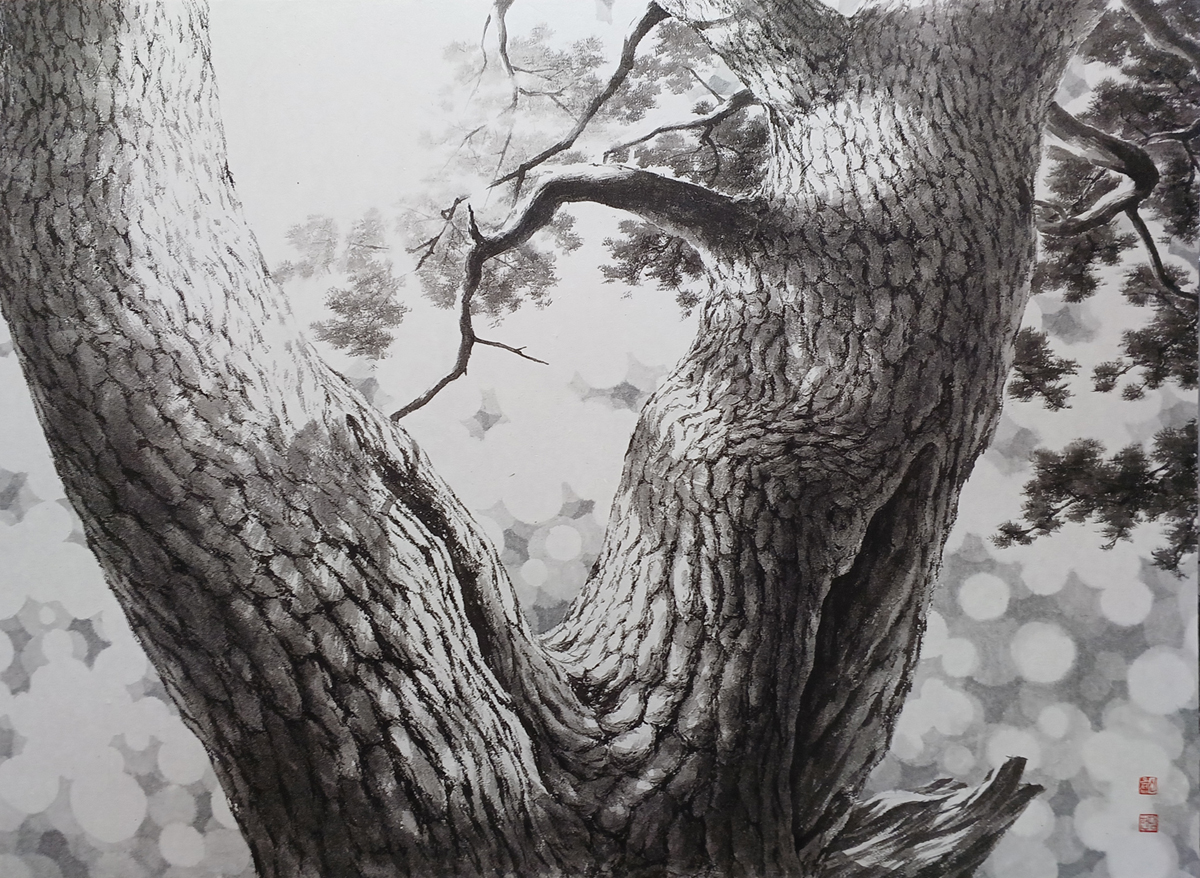 40호 pine tree-올려보기 100x73cm 수묵 2022 6월작품