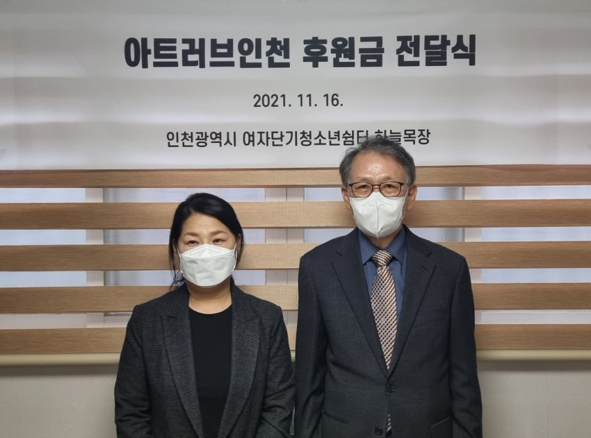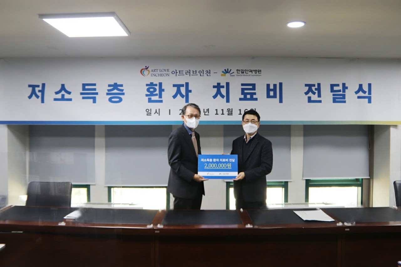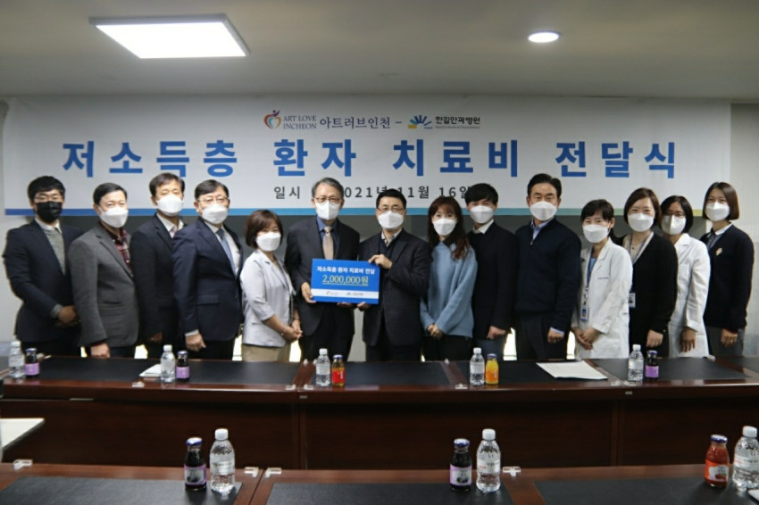 ♡2021년 11월 16일 케빈장 사진전의 수익금 일부를 전달하는 기부행사를 가졌습니다. 한길안과병원에 저소득층환자치료비 지원과 인천가출청소년단기쉼터 '하늘목장'에 후원금을 전달하였습니다. 아트러브인천은 인천의 유망 예술인 지원은 물론, 사회 취약계층에 도움을 주는 데에도 관심을 갖겠습니다. 감사합니다.