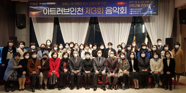 인천시간호사회(회장 장성숙)와 비영리문화예술지원단체 아트러브인천(이사장 김기동)은 공동으로 ‘간호사를 위한 힐링 음악회’를 12월 4일 오후 강화도 라르고빌 리조트 공연장에서 개최했다.