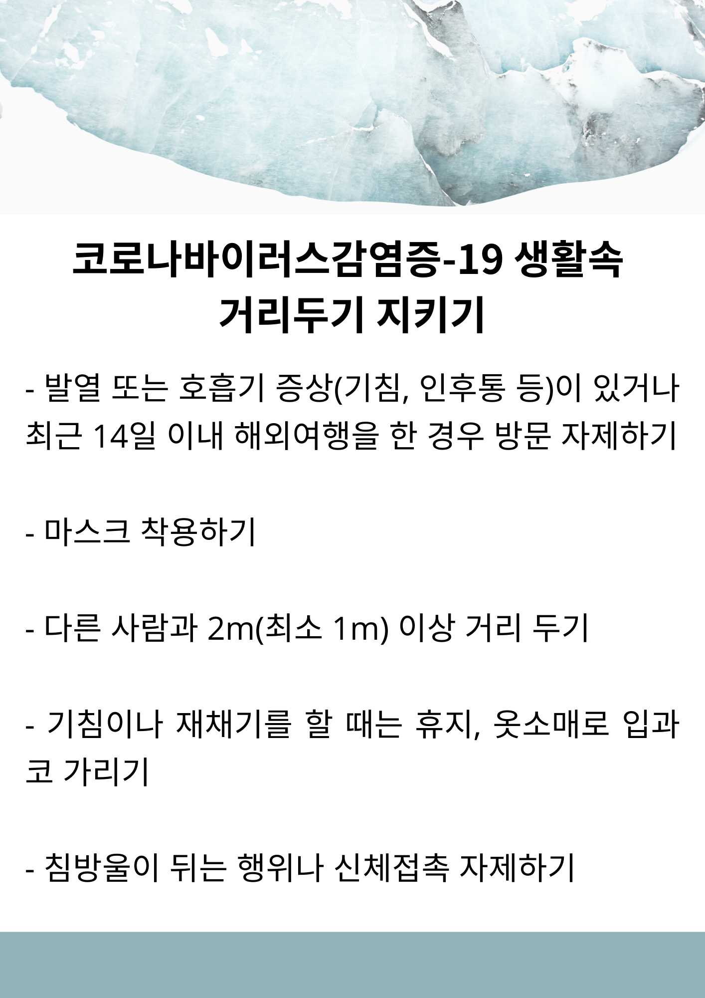 코로나-19 예방을 위한 생활속 거리 두기 지키기
