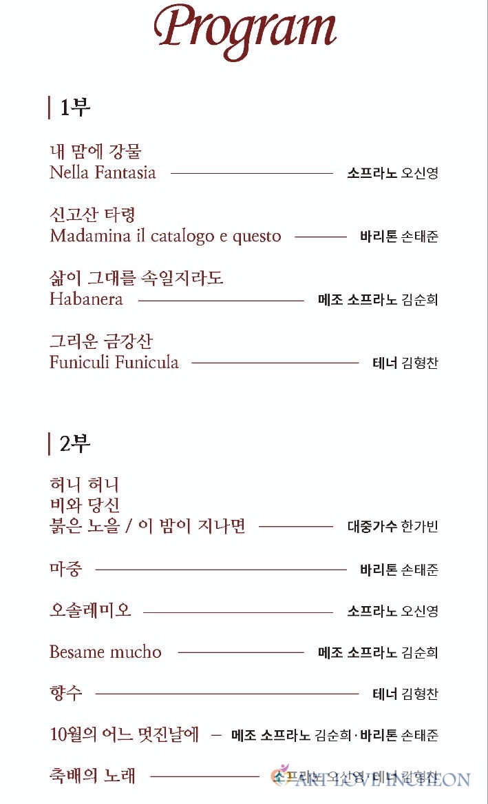 아트러브인천 제8회 음악회 프로그램