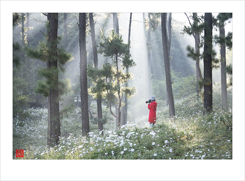 빨간코트의 사진작가의 모습이 내추럴 하게